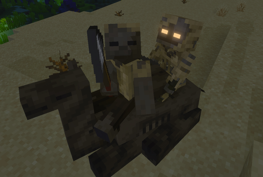 ラクダハスクの後部席に騎乗してスポーンする砂漠のスケルトンです。
