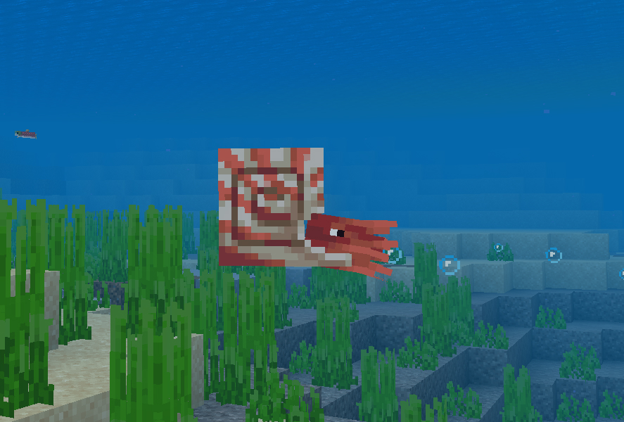 繁殖アイテムはフグ、あるいはフグ入りバケツ。懐き状態のオウムガイ2匹にフグを与える事で子供オウムガイが生まれます。